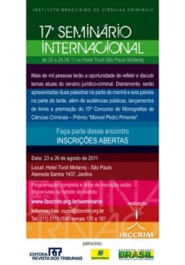 24/08 (São Paulo): painelista no 17º Seminário Internacional do Instituto Brasileiro de Ciências Criminais (IBCCrim), sobre “Lavagem de Dinheiro e Incriminação de Atividades Cotidianas” (clique aqui para ir ao hotsite do evento e aqui para ver a programação completa).